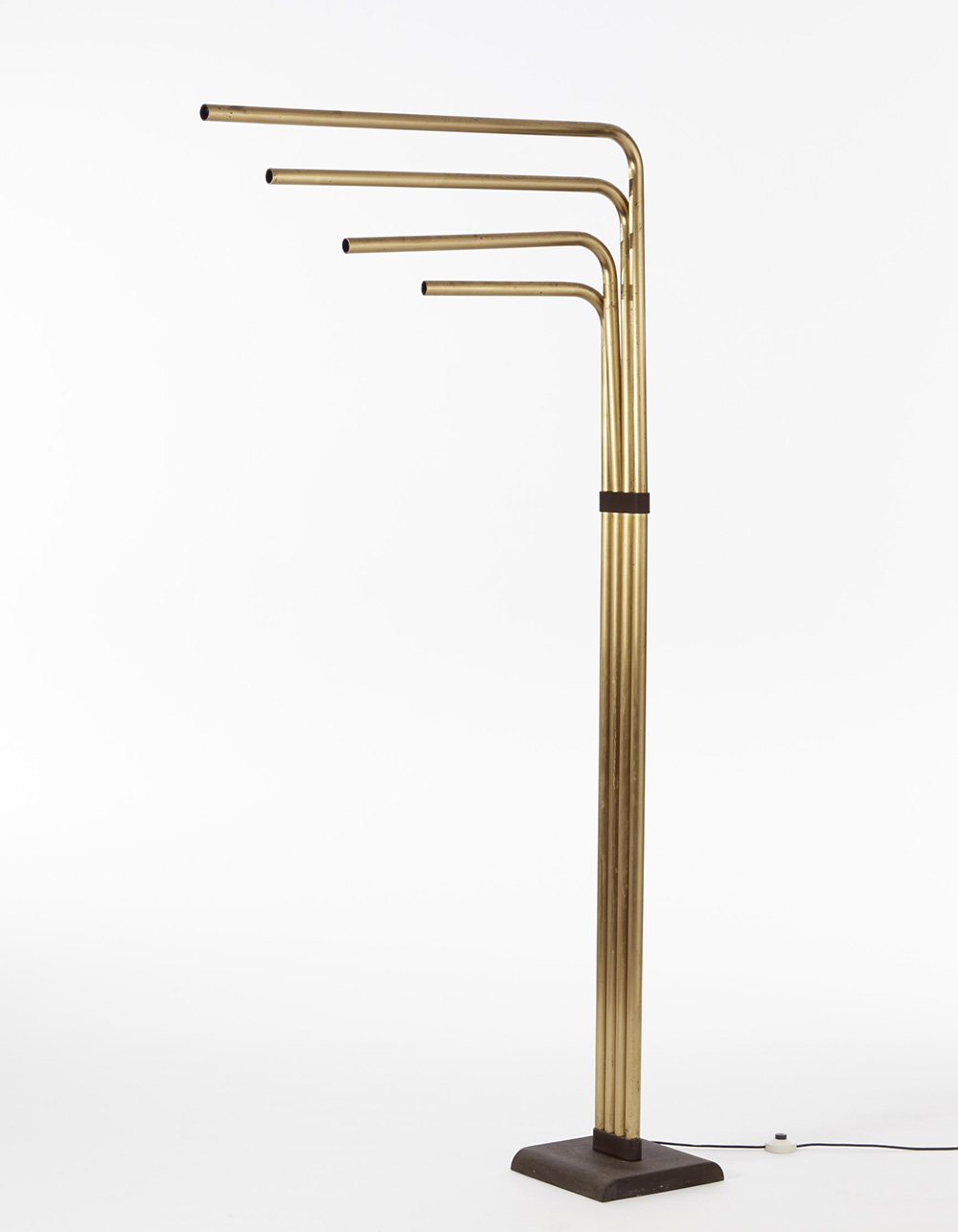 Goffredo Reggiani Lampada da terra a sei braccia in ottone, base in ghisa. Produzione Reggiani, Italia, anni 60 (h cm 201) (lievi difetti) Floor lamp. Brass and cast iron. Produced by Reggiani, Italy, 1960s (h cm 201) (minor defects)