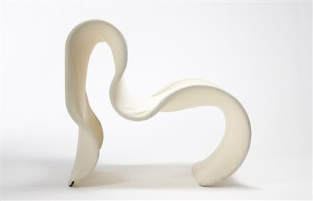 Gruppo G14 Poltrona modello "Fiocco". Produzione Busnelli. Metallo curvato, poliuretano espanso, tessuto elastico bianco (cm 71,5x110x110) (lievi difetti) Bibliografia: G. Gramigna, Repertorio del design italiano 1950-2000 per l'arredamento domestico, vol. 1, Allemandi, Torino 2003, p. 176 Armchair model "Fiocco". Produced by Busnelli, designe 1970s. Metal, polyhuretane, elastic fabric (cm 71,5x110x110) (minor defects) Bibliography: G. Gramigna, Repertorio del design italiano 1950-2000 per l'arredamento domestico, vol. 1, Allemandi, Torino 2003, p. 176