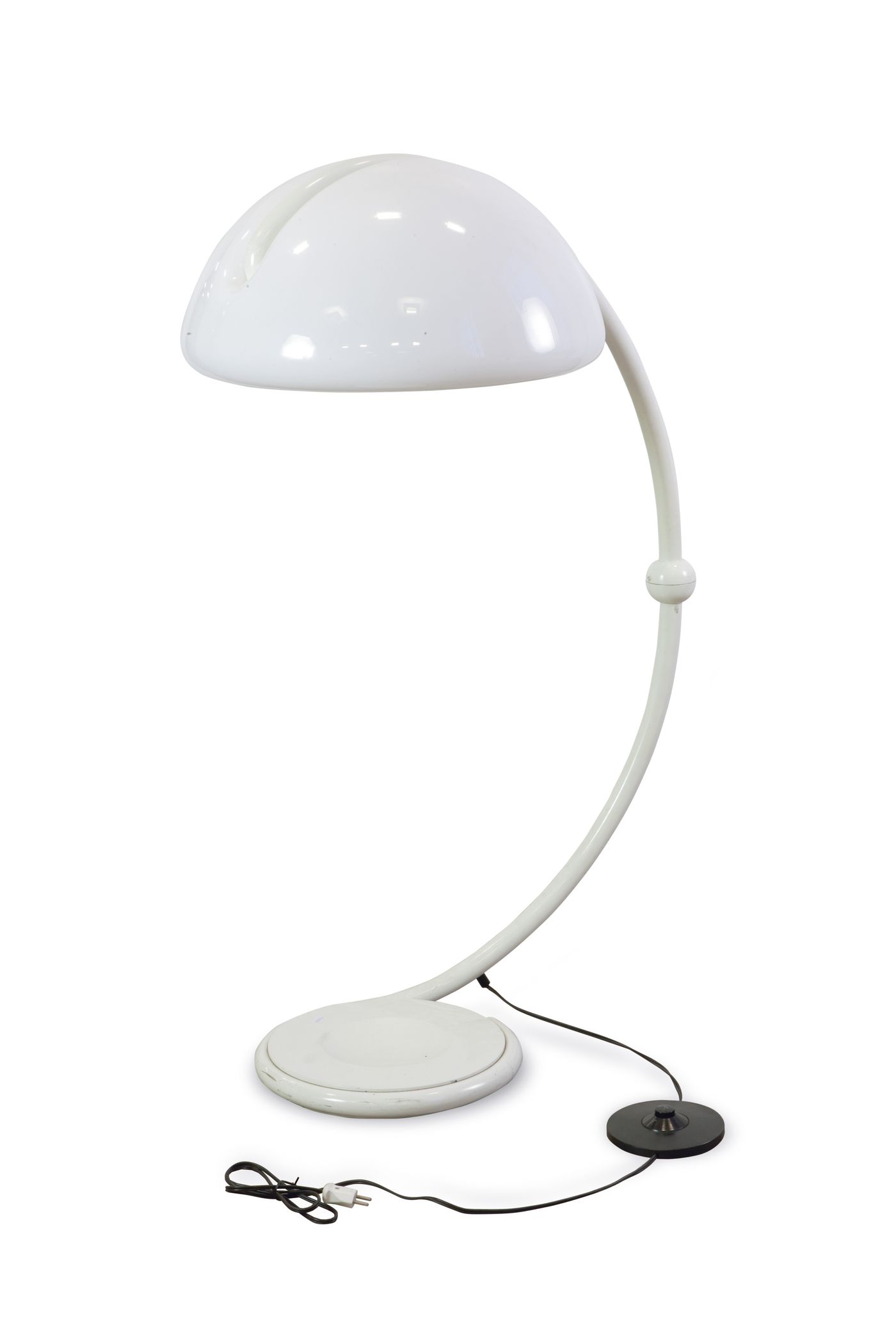 MARTINELLI ELIO - Mod. 2131 Serpente, Lampada da terra. Struttura in metallo laccato e paralume in metacrilato opalino. Prod. Martinelli Luce, Lucca, 1965. H cm 125, paralume diam. cm 54. Bibl.: C. e P. Fiell, "1000 Lights", vol.II, Taschen, 2005, pag. 87.