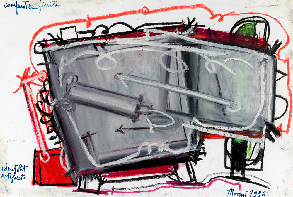 Mattia Moreni 1996 48x71 tecnica mista su cartoncino "identikit" autentica...