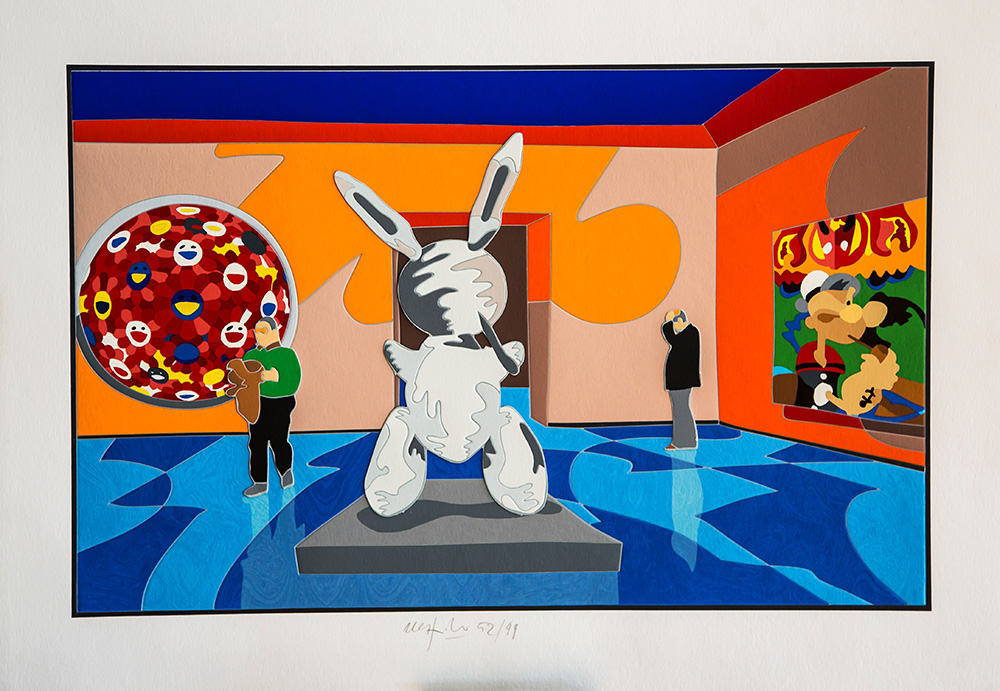 Ugo Nespolo Serigrafia con fustellatura e applicazioni 70x100 numata 52-99 museo Pop
