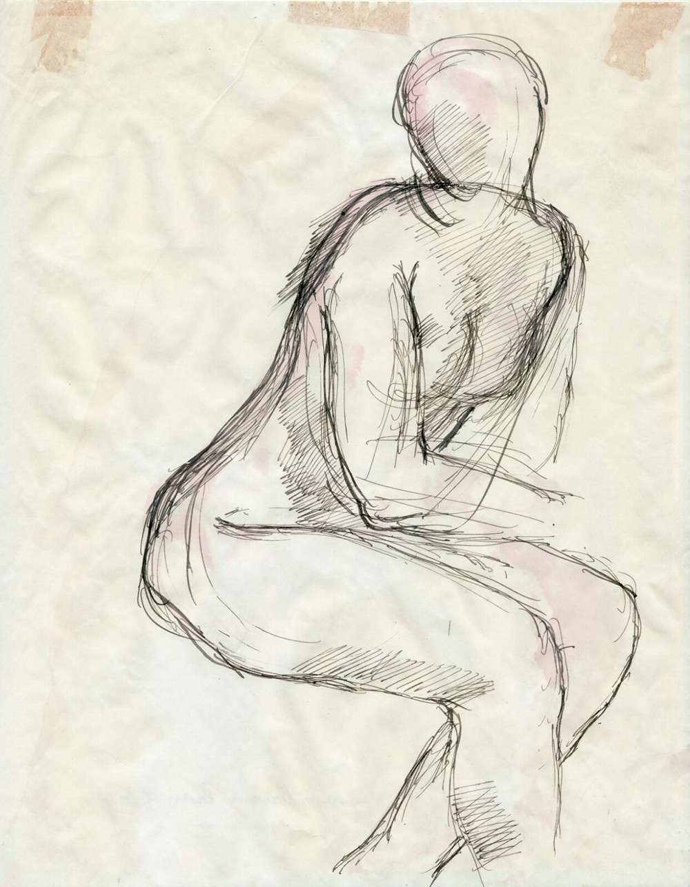 Bruno Calvani nudo seduto 22x28 china e acquerello su carta