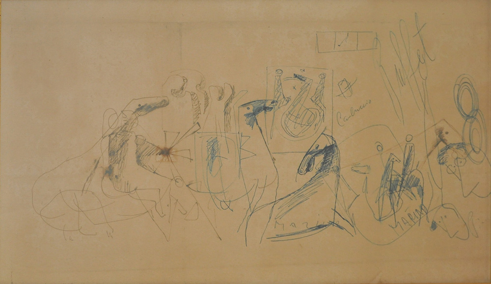 Marino Marini Composizione cavalli e figure Penna biro su carta 57 x 31 autentica fondazione Marini
