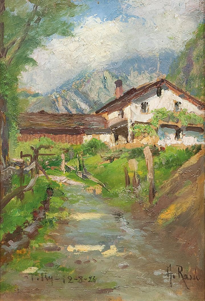 ROSSI ALBERTO Torino 1858 - 1936 "Viottolo alpino" 1926 26x17 olio su...