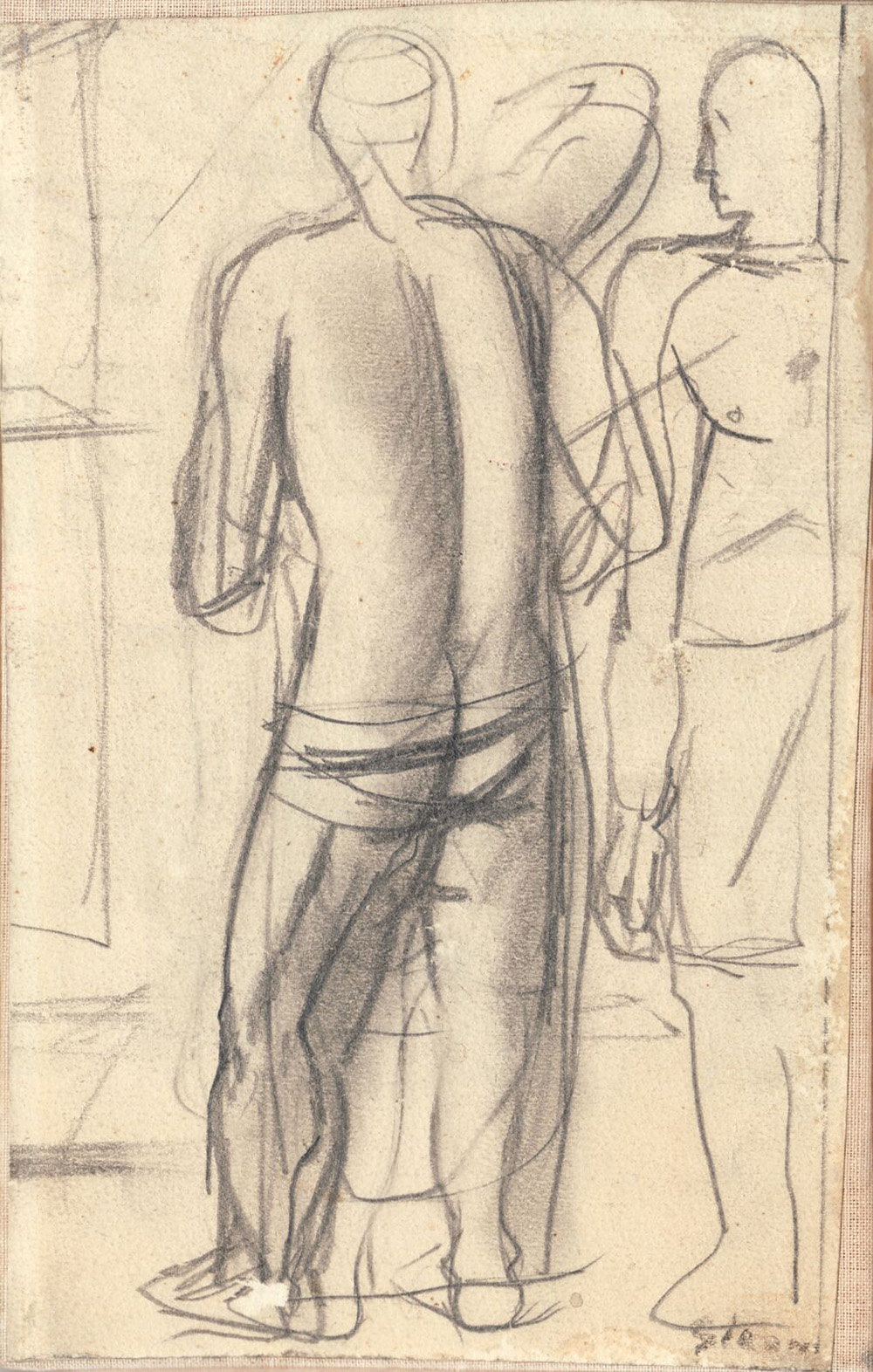 Lotto 71 | Mario Sironi figure 11x18 matita su carta riportata su tela anni '20