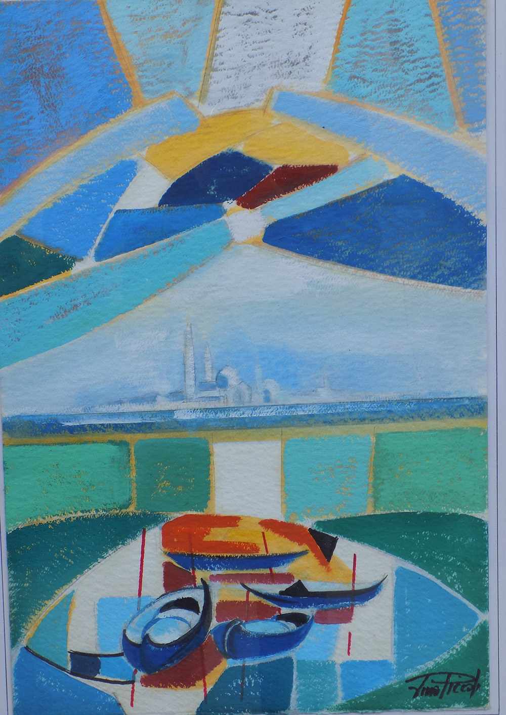 Lino Piccoli olio su carta Venezia dal mio studio 40X60 autentica dell'art....