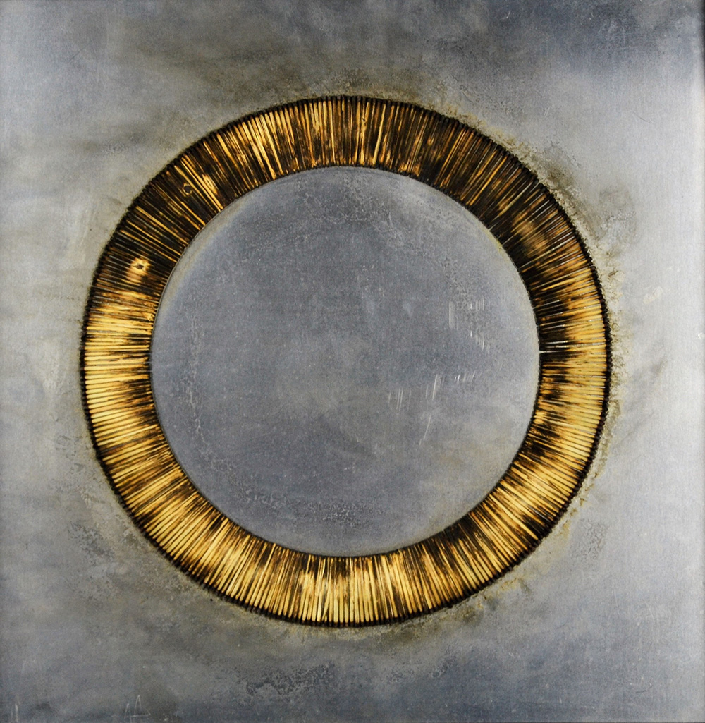 Aubertin fiammiferi bruciati su lamiera 50x50 opera archiviata