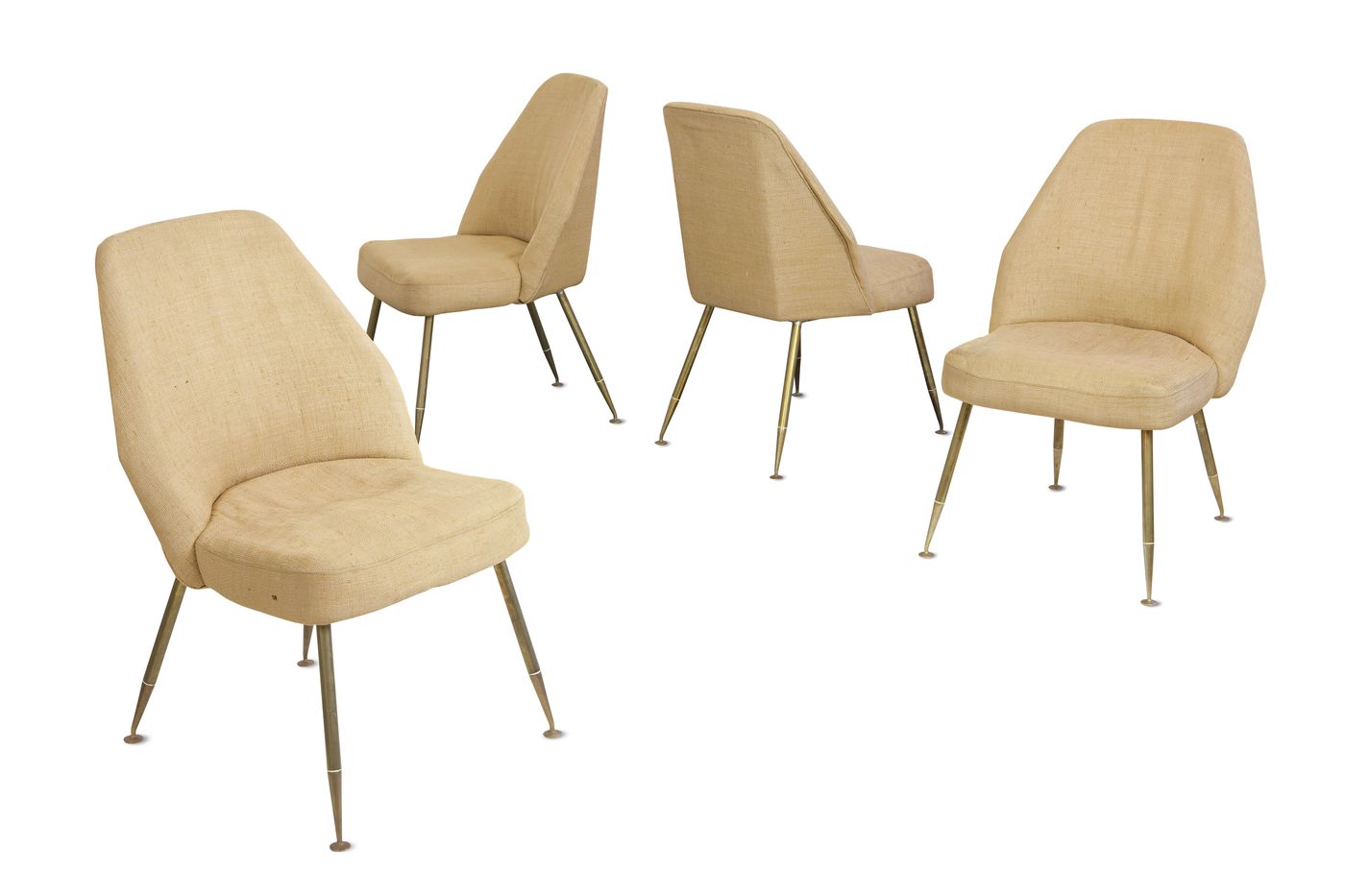 PAGANI CARLO – Campanula, Quattro poltroncine. Imbottitura in gommapiuma e gambe in metallo. Prod. Arflex, Milano, 1952. Bibl.: Giuliana Gramigna, "Repertorio 1950-1980", Mondadori, 1985, pag. 71.