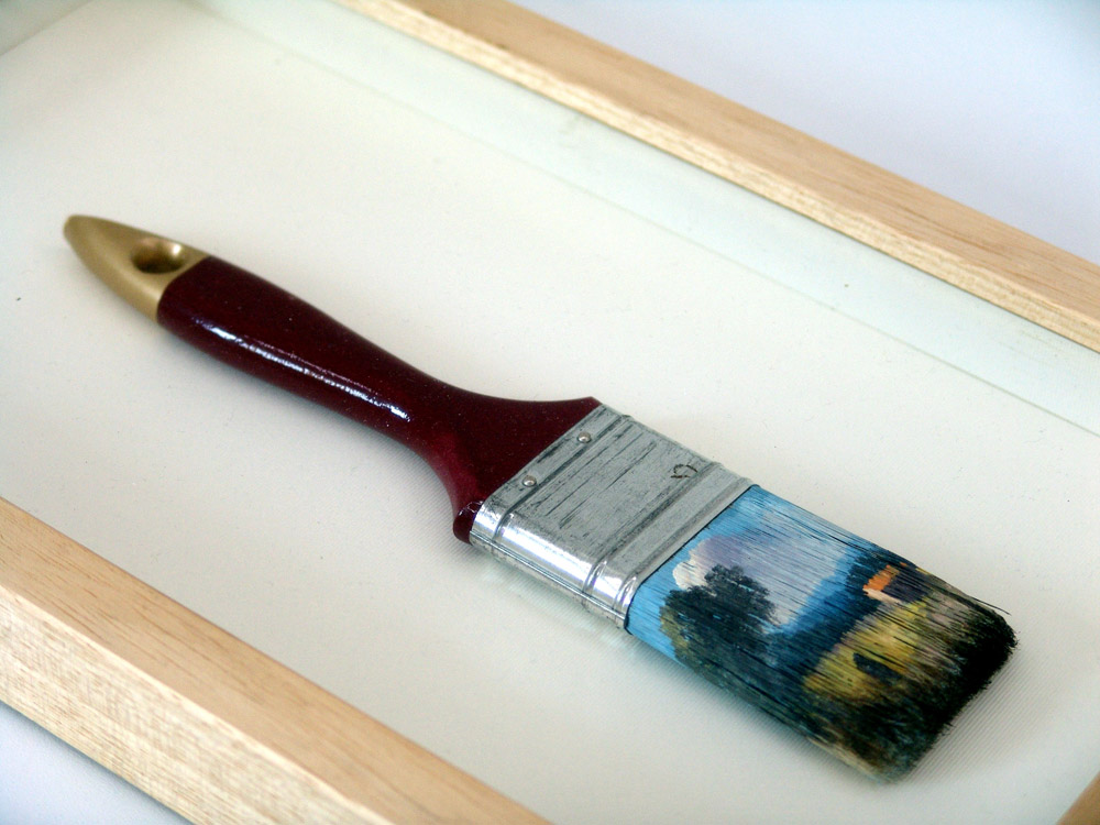 Ubaldo Bartolini 1944, Ascoli Piceno (Ap) - [Italia] senza titolo olio su setole di pennello 20x5x1 cm 1973-2007 firma dell'artista sul retro del pennello; opera contenuta in teca di legno e plexiglass certificato di autenticità dell’artista su fotografia