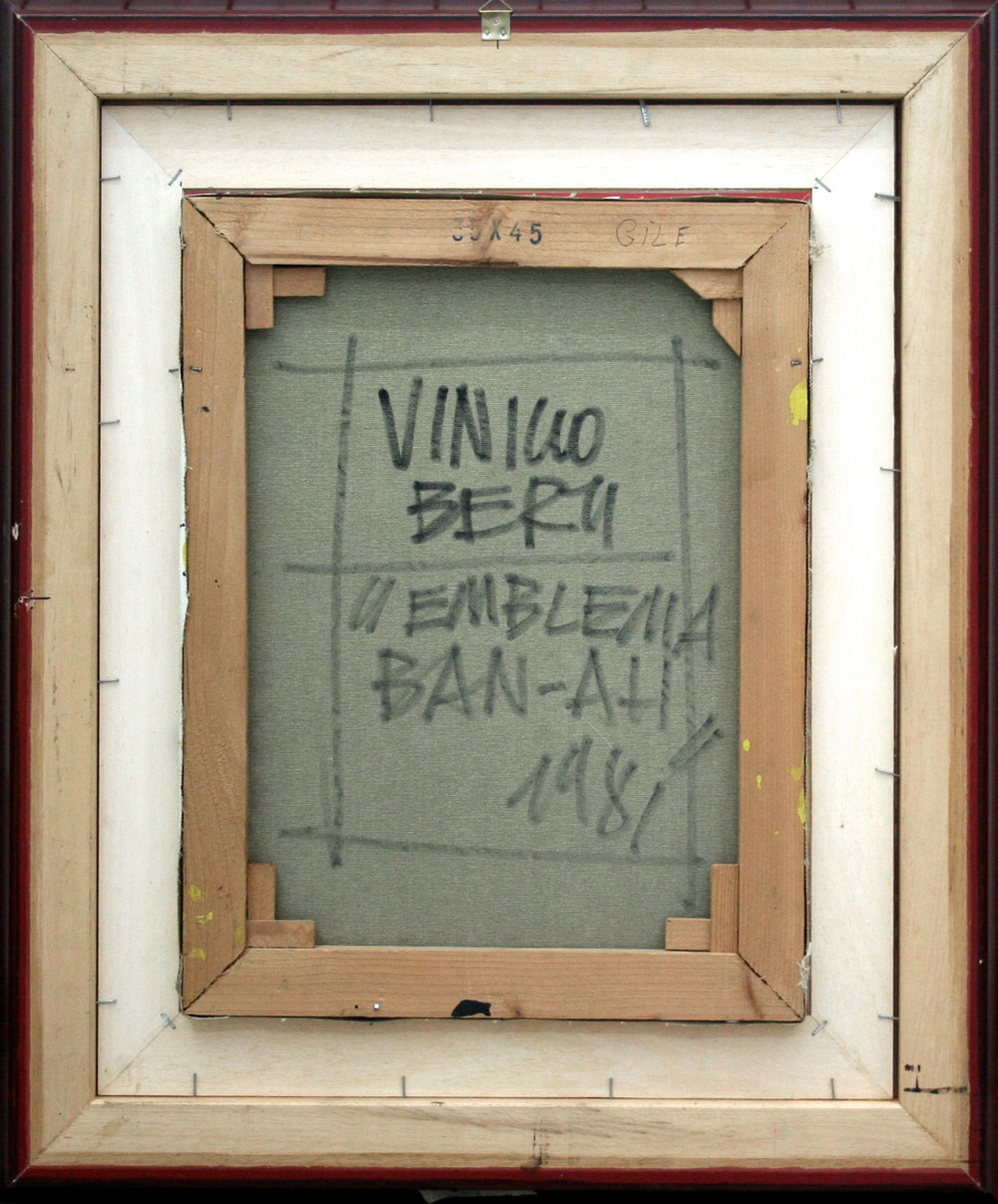 Vinicio Berti 1921, Firenze (Fi) - 1991, Firenze (Fi) - [Italia] Emblema ban-ah olio su tela 45x35 cm 1981 firma dell’artista sul retro; opera con cornice certificato di autenticità firmato da Liberia Pini Berti