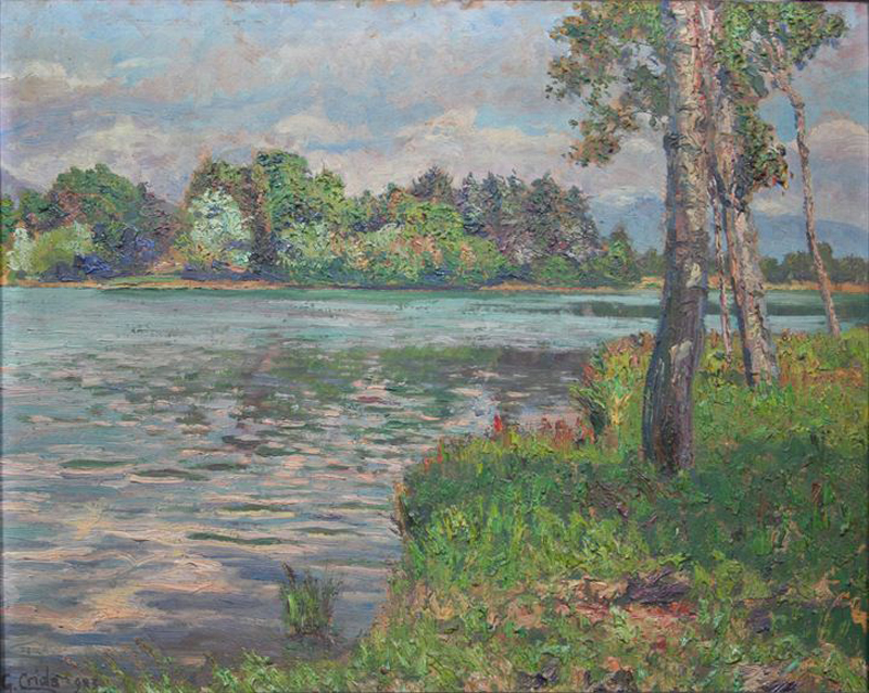 CRIDA GIOVANNI PAOLO Graglia (BI) 1886 - 1967 "Fiume tra i boschi" 1923 47x60...