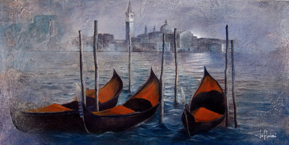 Alvaro Peppoloni 1951, Spello (Pg) - [Italia] Nebbia veneziana retouche su tavola 40x80 cm 2015 firma dell’artista in basso a destra e sul retro certificato di autenticità firmato dall’artista