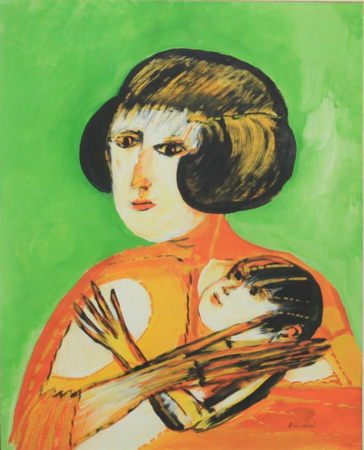 BRINDISI REMO Roma 1918 - 1996 Milano "Maternità" 55x45 olio su tela Opera...