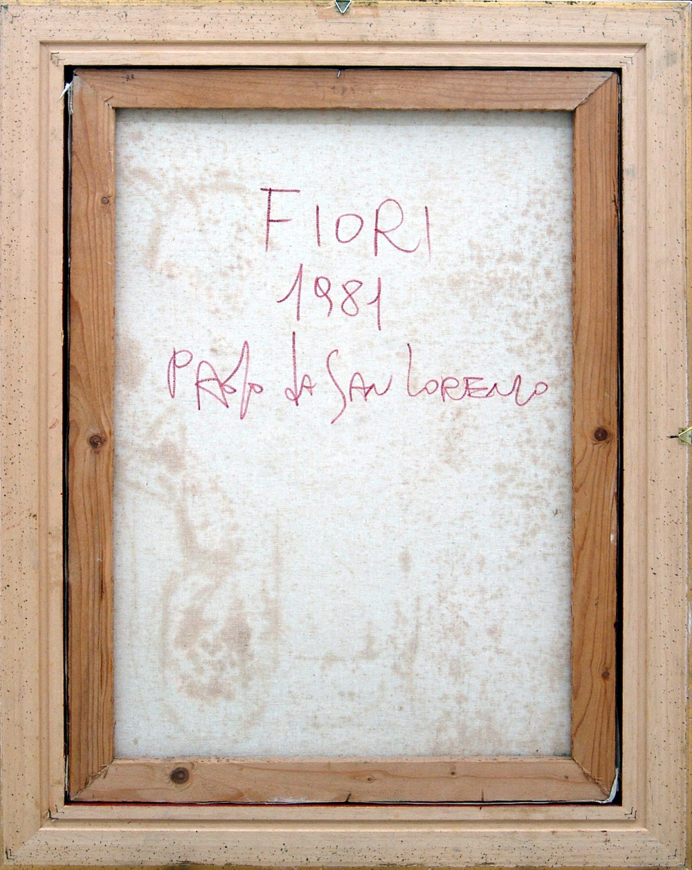 Paolo da San Lorenzo 1935, San Lorenzo in Campo (Pu) - [Italia] Fiori olio su tela 70x50 cm 1981 firma dell’artista in basso a sinistra e sul retro; opera con cornice certificato di autenticità firmato dall’artista
