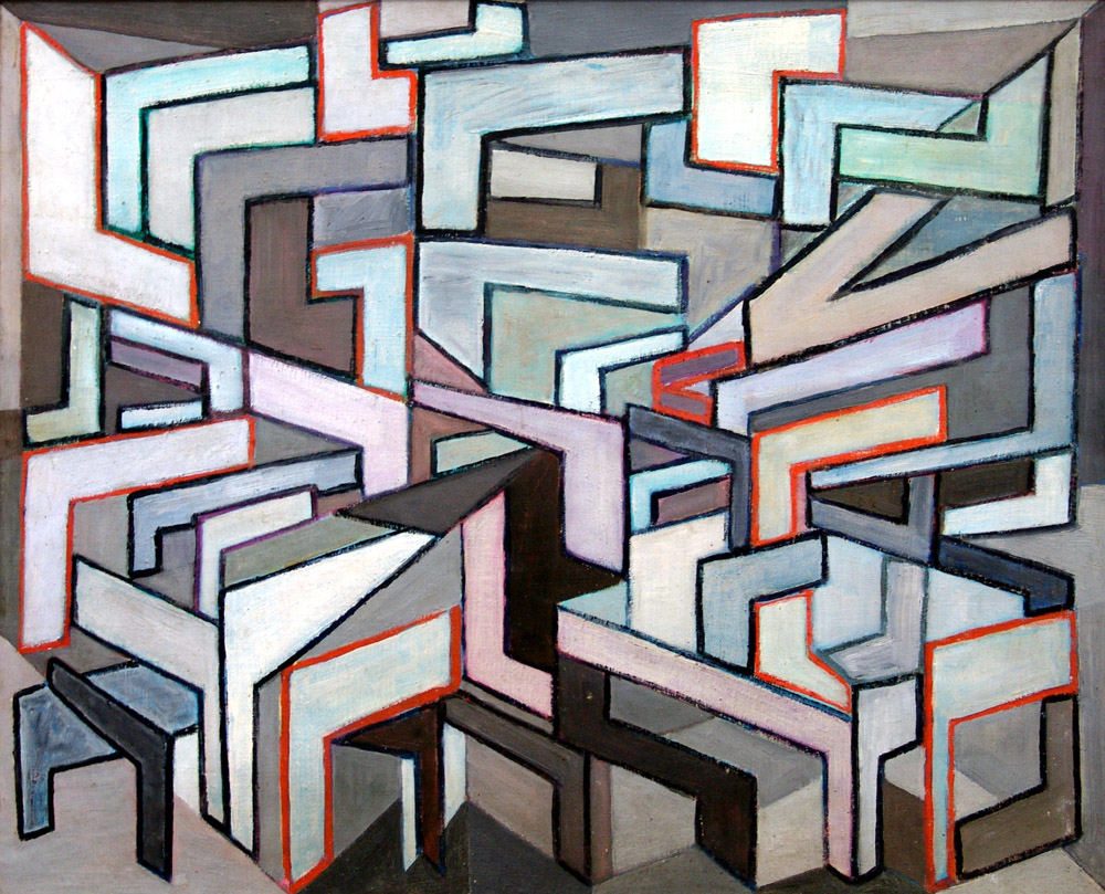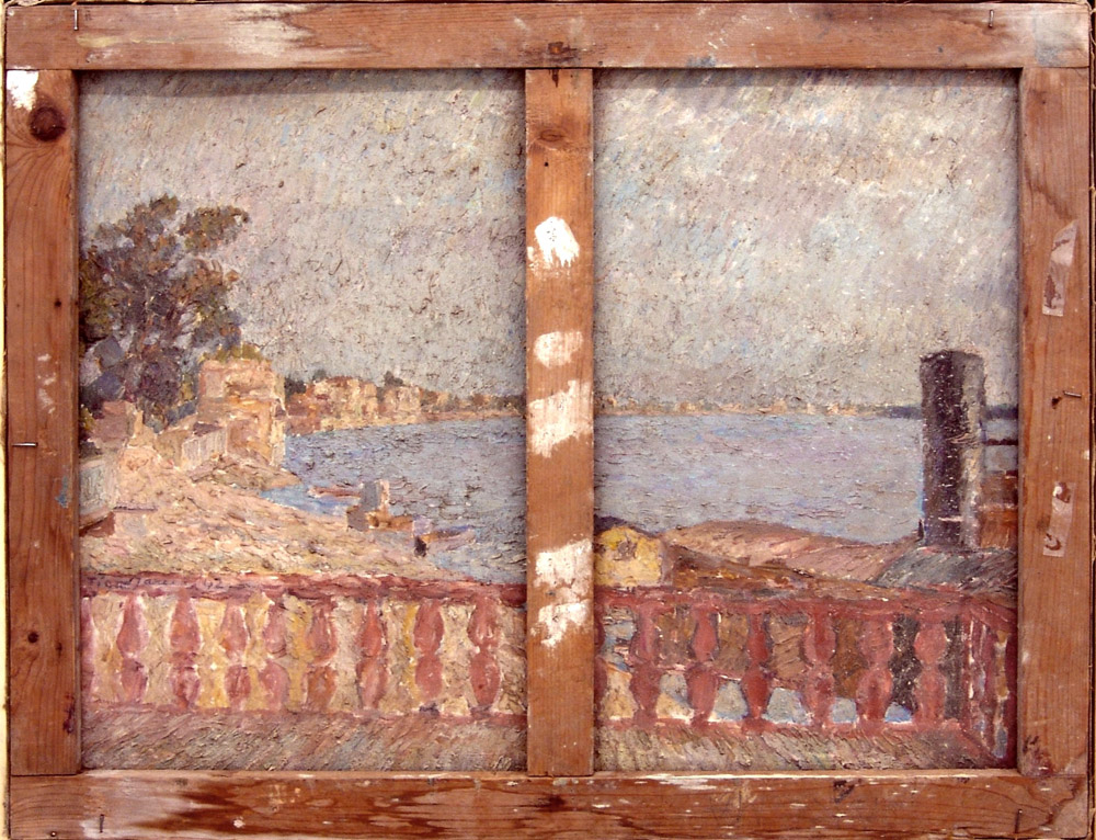 Jozef Jarema 1900, Staryj Sambir (Ucraina) - 1974, Monaco (Germania) - [Polonia] senza titolo tempera su tela 60x74 cm c. 1950 firma dell’artista sul retro; opera con cornice; tela dipinta anche sul retro con firma e data 1942 certificato di autenticità Picenum