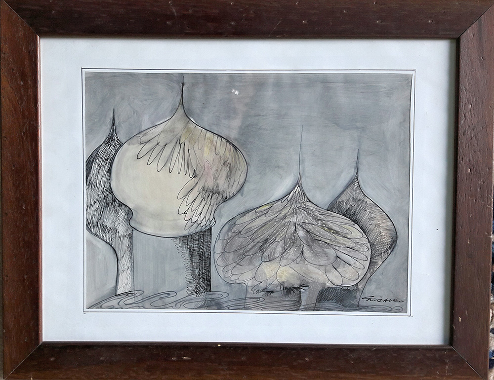 Ezio Gribaudo "Cupole a Mosca" - Anni Settanta - Tecnica mista su cartoncino-...