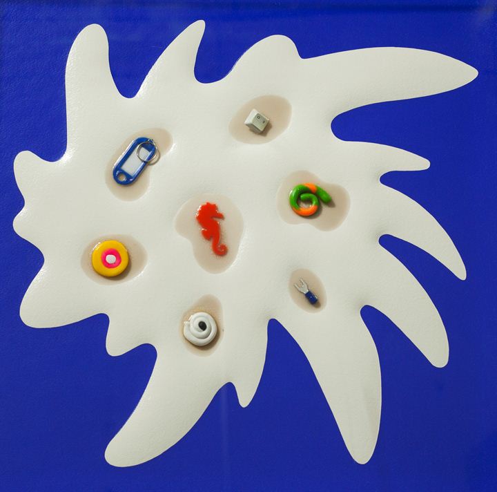 50x50 legno, carta, colore serigrafico, resine, oggetti su masonite