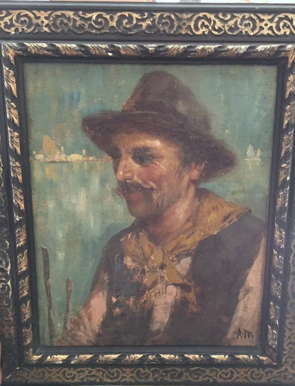 Antonio Mancini "Ritratto d'uomo" - Olio su tela -cm 32x34 - Firma...