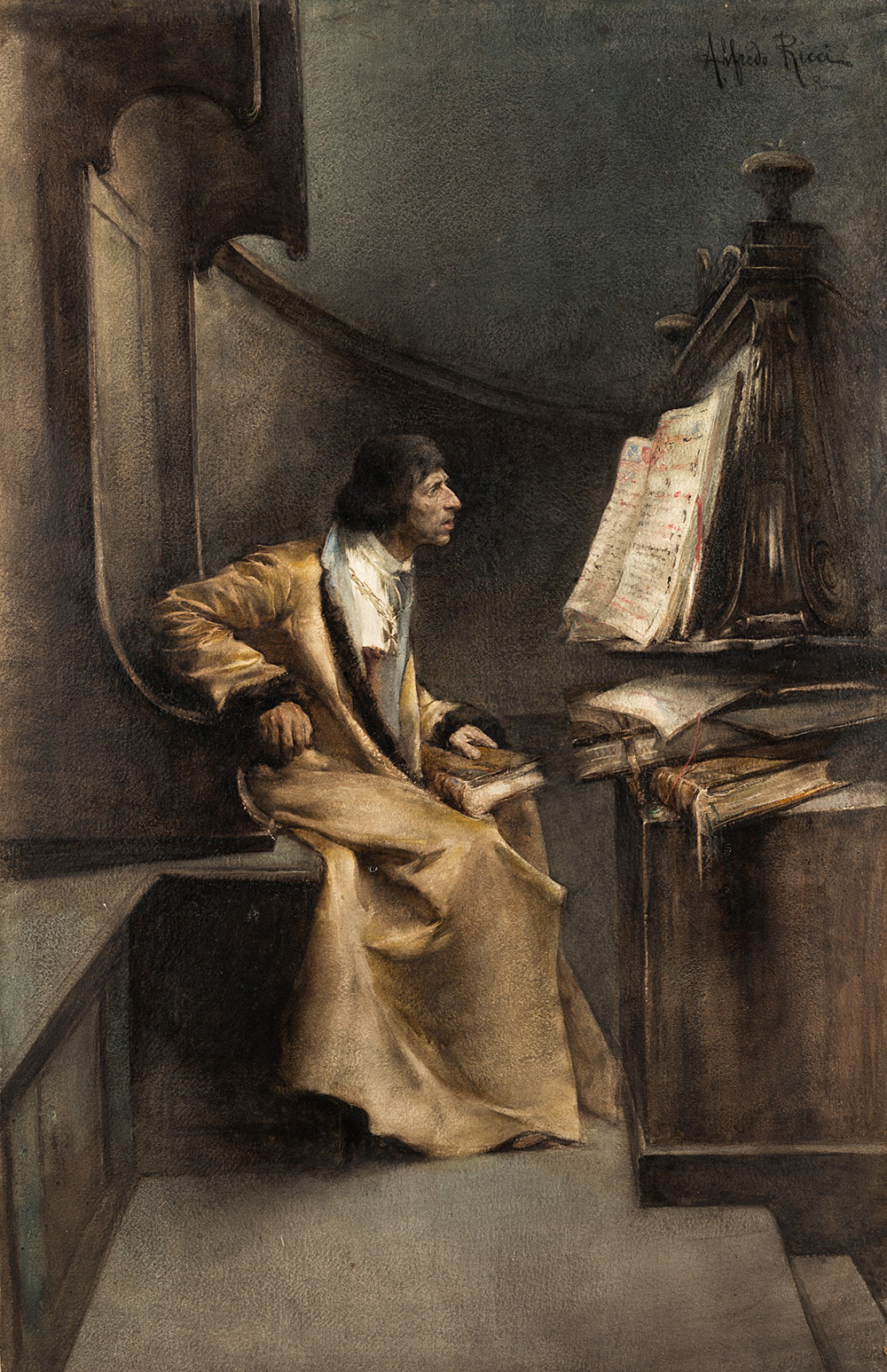 Alfredo Ricci (Roma 1864 - 1889) "La lettura" acquerello su carta (cm 101x66)...
