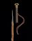 Bastone Makila, Makhila o Maquila, con canna in legno di ginepro intagliato a motivi stilizzati e presa rivestita in pelle con anello porta laccio. Pomolo in corno con cifre "EJ" in argento. Spagna, sec. XIX Makila, Makhila or Maquila walking stick with leather handle and horn knob ciphered "EJ". Spain, 19th century