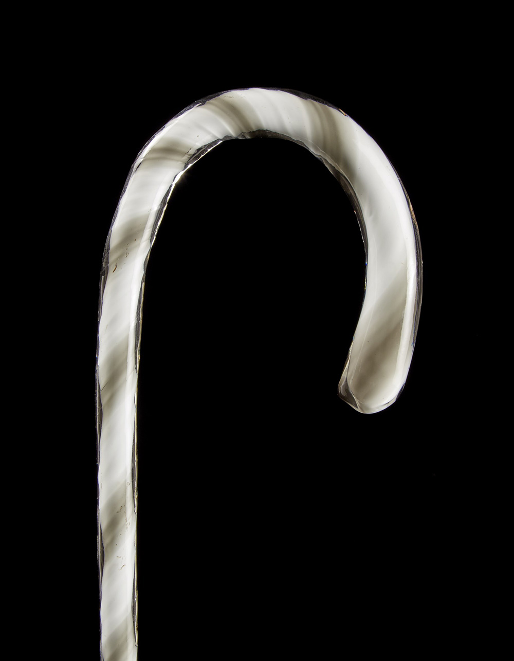 Bastone in vetro con canna decorata a striature A glass walking stick