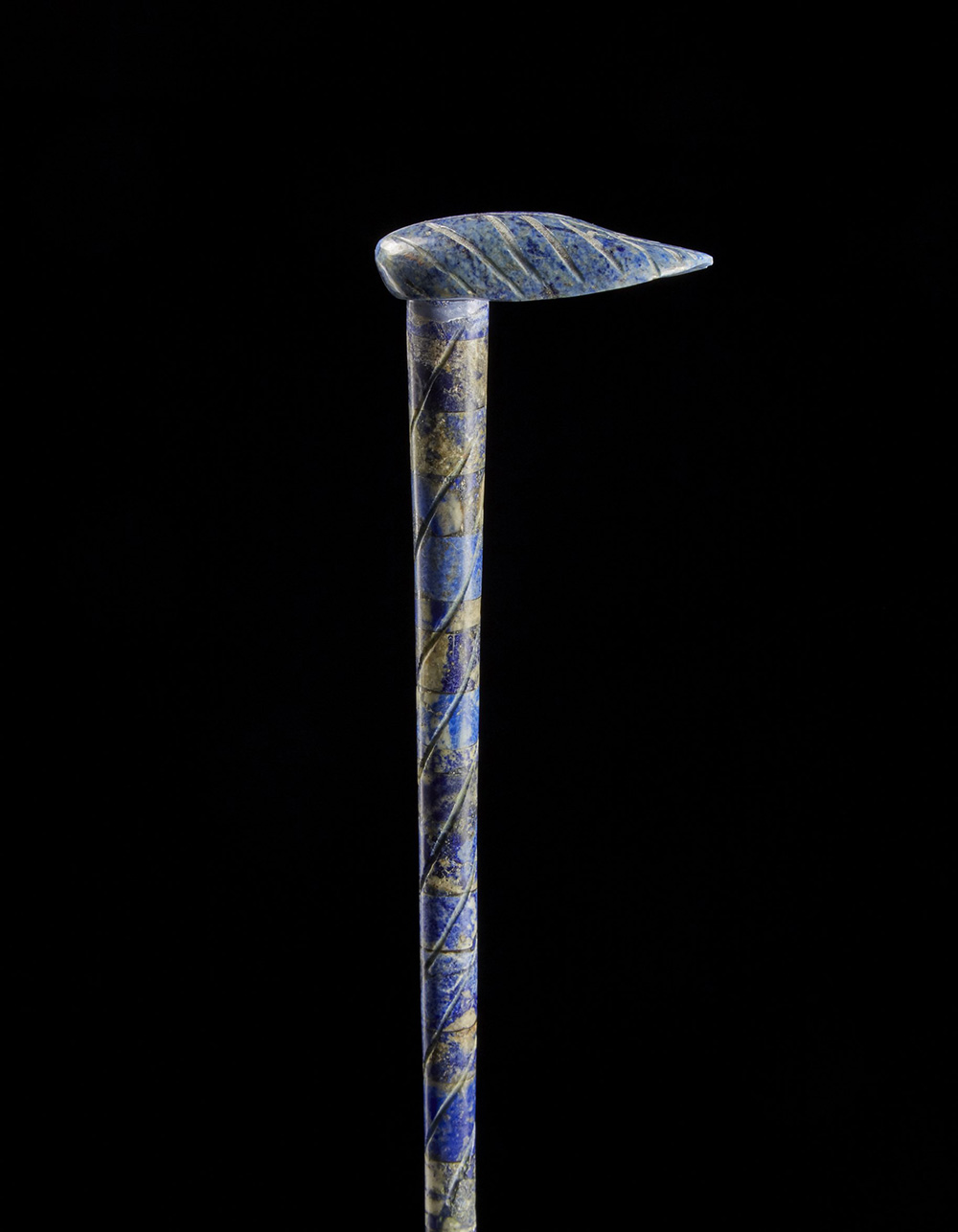 Lotto 1283 | Bastone in lapislazzuli e sodalite con corpo decorato da scanalatura. Presa...