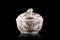Zuccheriera con coperchio in porcellana decorata "a galletto" in monocromia...