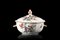 Tazza tonda da brodo con coperchio in maiolica policroma con decorazione...