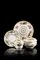 Tazza da brodo con piatto polilobato in porcellana policroma con decorazione...
