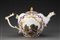 Teiera con coperchio in porcellana decorata in policromia con paesaggi entro riserve di girali e foglie. Pomolo a pigna, ansa con finali a ricciolo, beccuccio zoomorfo. Marca di fabbrica e numerale in oro. Meissen prima met‡ del sec. XVIII (cm 9) (difetti) A porcelain teapot with cover. Meissen, first half of the 18th century (defects)