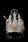 Cruet in argento di forma ovale con sponda bombata e sagomata, decorato con festoni di fiori e profili perlinati, sorretto da quattro piedini fogliati, e contenente otto flaconi in cristallo molato e argento. Presa ad anello con mascherone. Citt‡ di Sheffield, 1866. Argentiere Atkin Brothers (h. max cm 30 ca.; largh. cm 23) (gr 1500 ca. senza flaconi) (lievi difetti) An oval-shaped silver cruet with eight bottles. Sheffield, 1866. Silversmith Atkin Brothers (h. max cm 30 ca; width cm 23) (gr 1500 ca. without bottles) (minor defects)