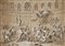 Antico disegno a matita, china e rilievi in biacca raffigurante una scena...