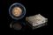 Portacipria in argento di forma circolare con coperchio decorato da placca in...