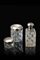 Tre contenitori da toilette in vetro molato con tappi in argento lisci con...