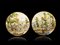 Manifattura dell'Italia centrale, fine sec. XIX. Coppia di piatti in ceramica decorata in policromia a scene di vita con peasaggi fluviali e architettute (d. cm 40) Central Italy manufacture, late 19th century. A pair of polychrome decorated ceramic dishes (d. cm 40)