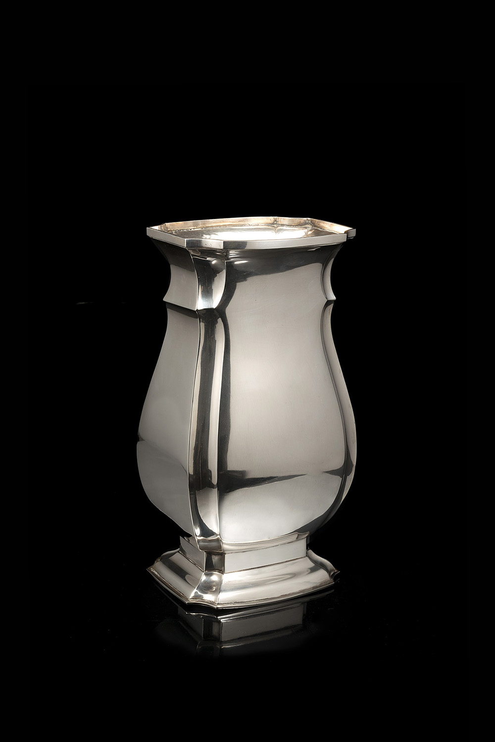 Lotto 1564 | Vaso in argento con corpo a balaustro a sezione rettangolare mistilinea,...
