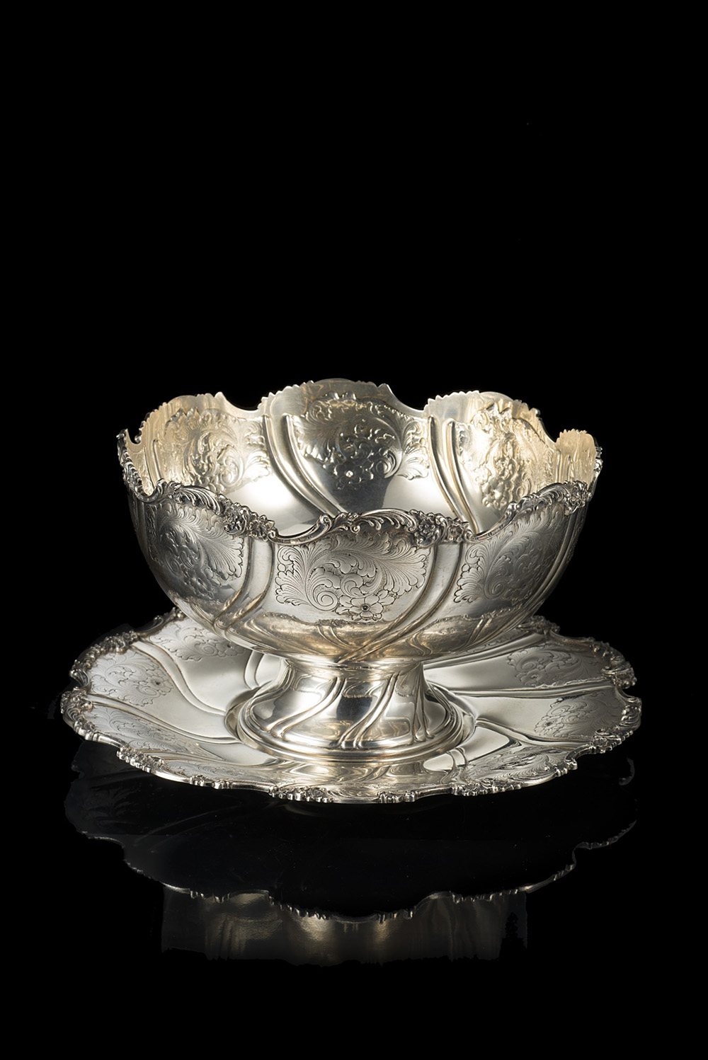 Centrotavola in argento composto da un piatto e un'alzata, di forma...