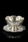 Centrotavola in argento composto da un piatto e un'alzata, di forma circolare, sagomati con fesonature e specchiature alternate e decorati con motivi floreali cesellati e applicati. Italia, sec. XX (d. piatto cm 29, d. alzata cm 23,5; h. tot cm 15,5 ca) (gr 1260 ca.) (lievi difetti) A silver centerpiece. Italy, 20th century (h tot cm 15,5 ca.) (gr 1260 ca.) (minor defects)