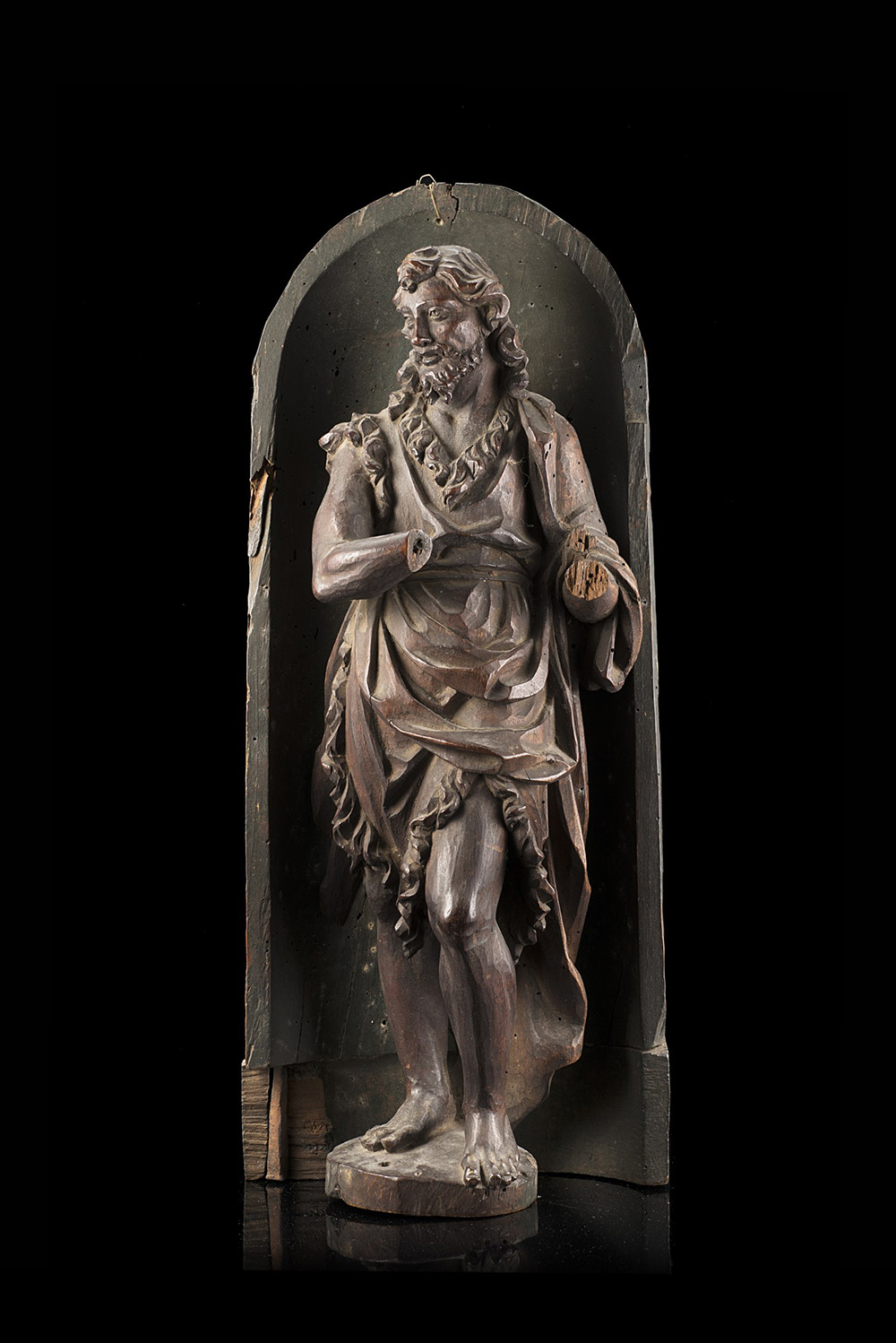 Arte del secolo XVIII "Cristo" scultura lignea (h. cm 40) montata su pannello (difetti e mancanze) 18th-century art ìChristî a wooden sculpture (h. cm 40) on panel (defects and losses)