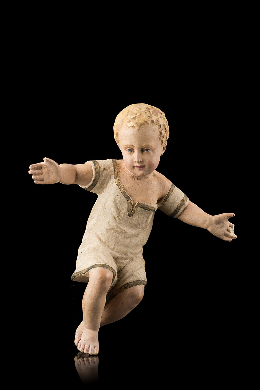 Arte napoletana "Bambinello" scultura da presepe in terracotta dipinta (h. cm...