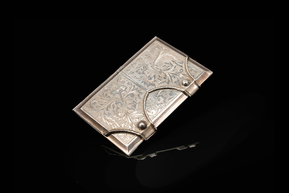 Portabiglietti in argento di forma rettangolare decorato a 'bright cut' con...