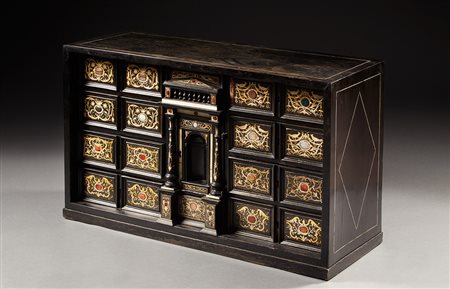 Lotto 1676 | Stipo in legno ebanizzato a dieci cassetti e anta centrale di forma...