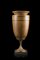 Vaso in ciliegio tornito con filetti in legno ebanizzato poggiante su piede intagliato a motivi concatenati. Base quadrata in marmo (h. cm 50) (difetti e restauri) A cherry-wood and ebonised wood vase with marble base (h. cm 50) (defects and restorations)