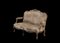 Divano in mogano con schienale e braccioli mossi ed intagliati a volute,...