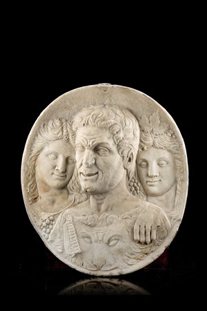 Arte del sec. XIX "Pan e baccanti" altorilievo in marmo (cm 46x40) (difetti e restauri) 19th-century art "Pan and maenads" marble high relief (cm 46x40) (defects and restorations)
