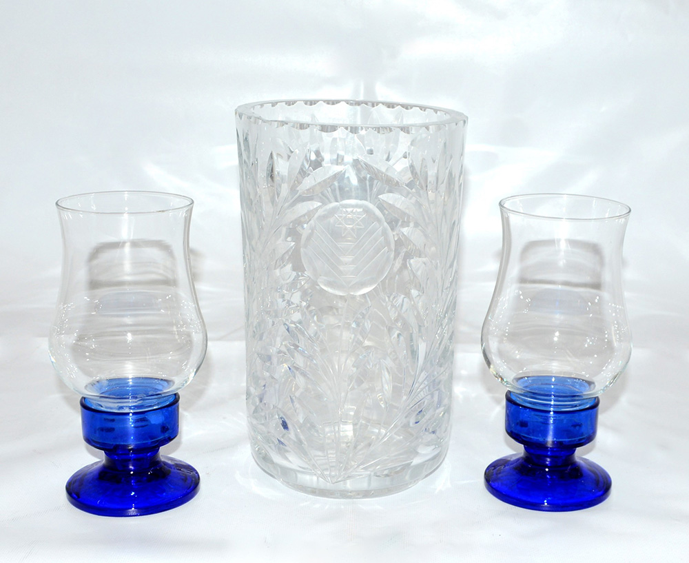 Lotto composto da un vaso in cristallo molato e due porta candele in vetro