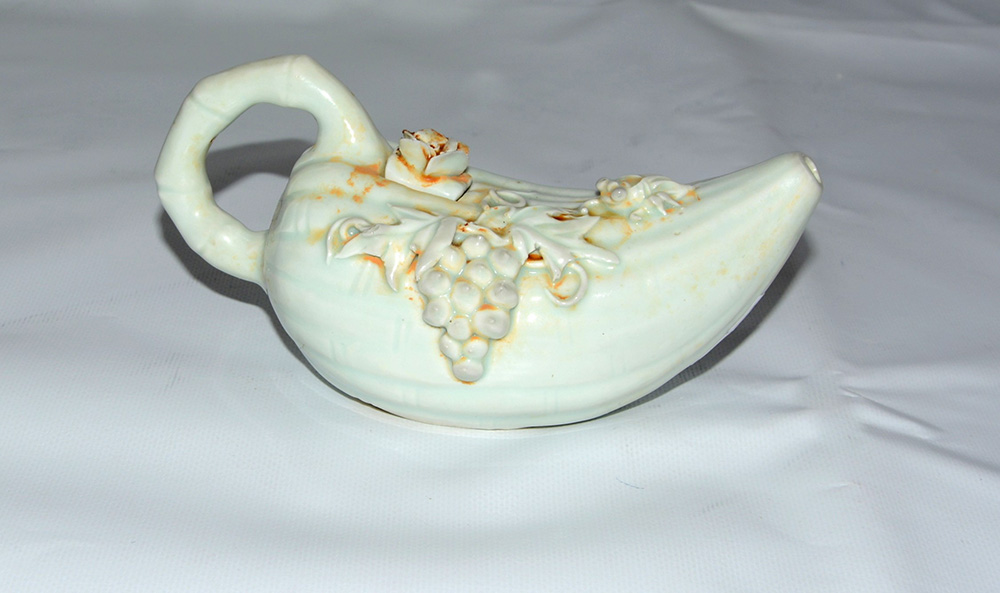 Piccola teiera con coperchio in terrocotta con raffigurazione di grappolo...