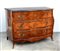 Antico comÚ di forma mossa a tre cassetti. Piano in marmo nero (difetti e...