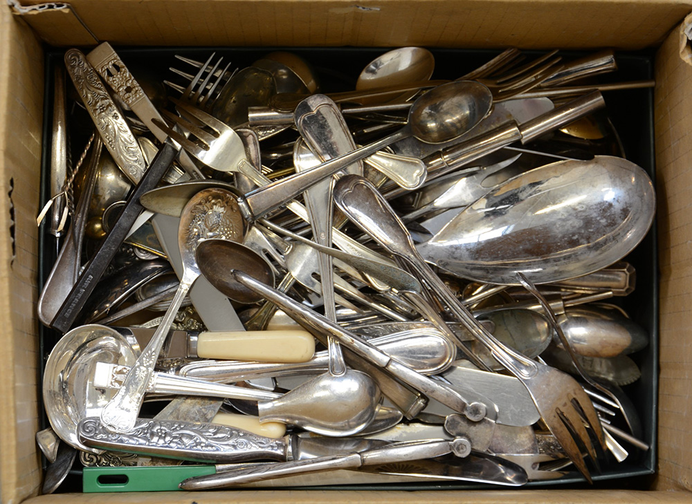 Lotto composto da numerose posate in metallo argentato (difetti)