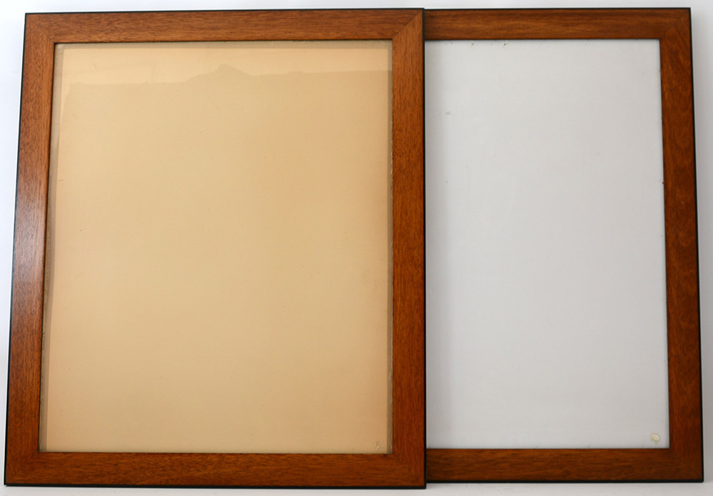 Coppia di cornici in legno dolce con profilo ebanizzato (luce cm 54x63,5) (lievi difetti)